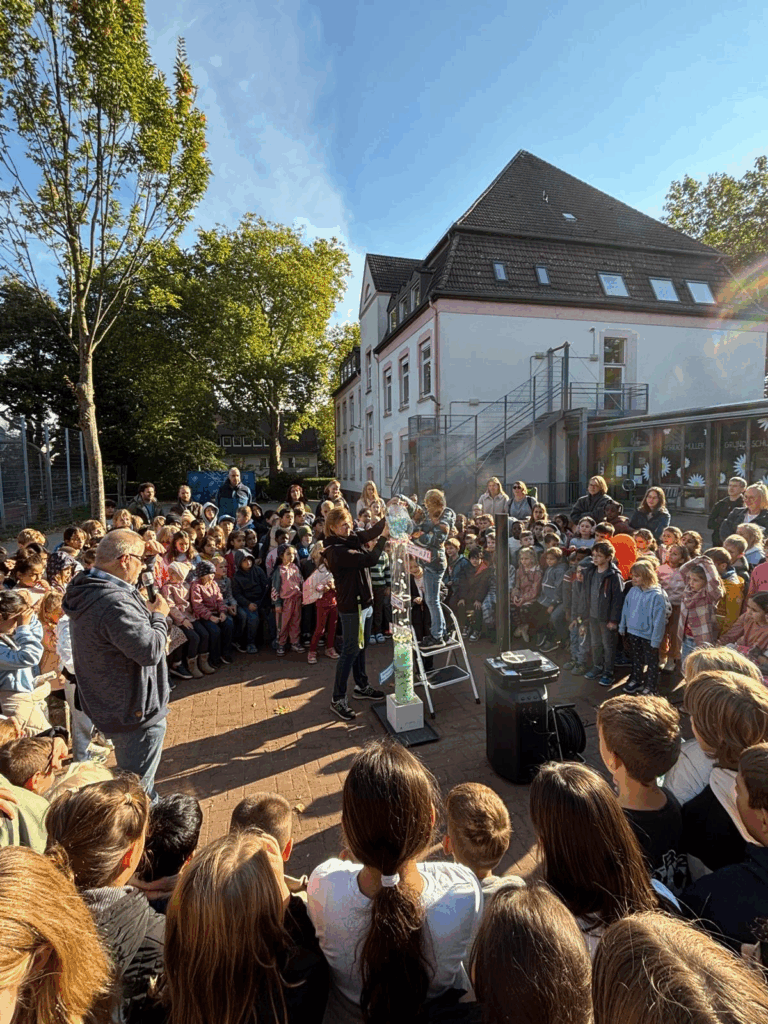 Die Kinder unserer Schule freuen sich über eine großzügige Spende des Fitnessstudios „Turnhalle Vital“. Geschäftsführer Nadim Karsifi, überreichte am 15. Mai 2025 zwei große Pakete mit neuen Spiel- und Sportmaterialien, die sofort begeistert ausprobiert wurden. Die Spende kommt dem Sportunterricht und den AGs in der OGS zugute – ein herzliches Dankeschön für diese tolle Unterstützung!