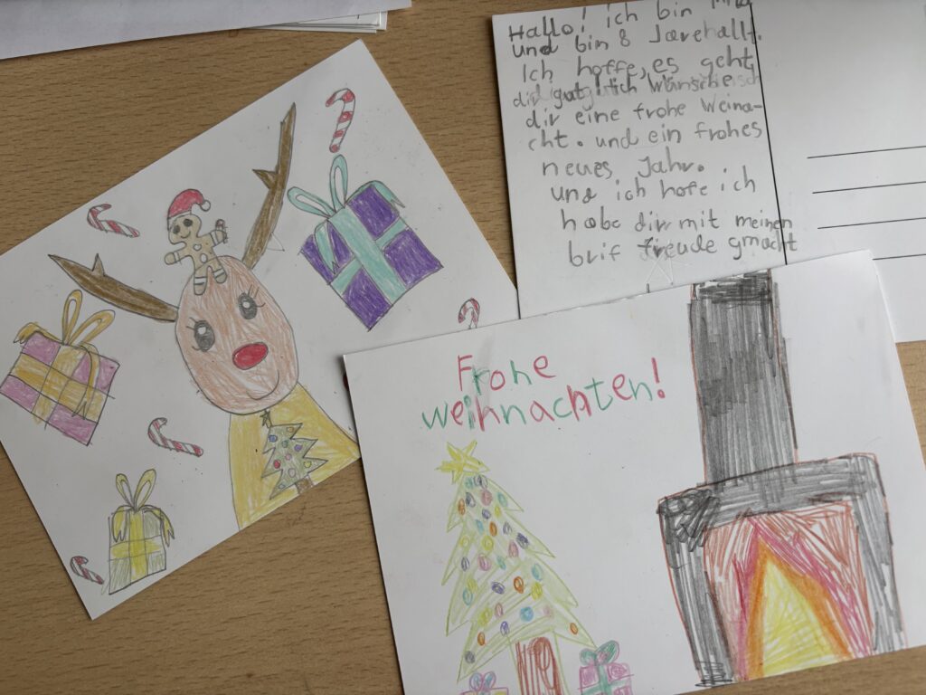Eine weitere tolle Aktion: Drittklässlerinnen und Drittklässler haben tolle Weihnachtskarten zum Verteilen in der Seniorenresidenz geschrieben!